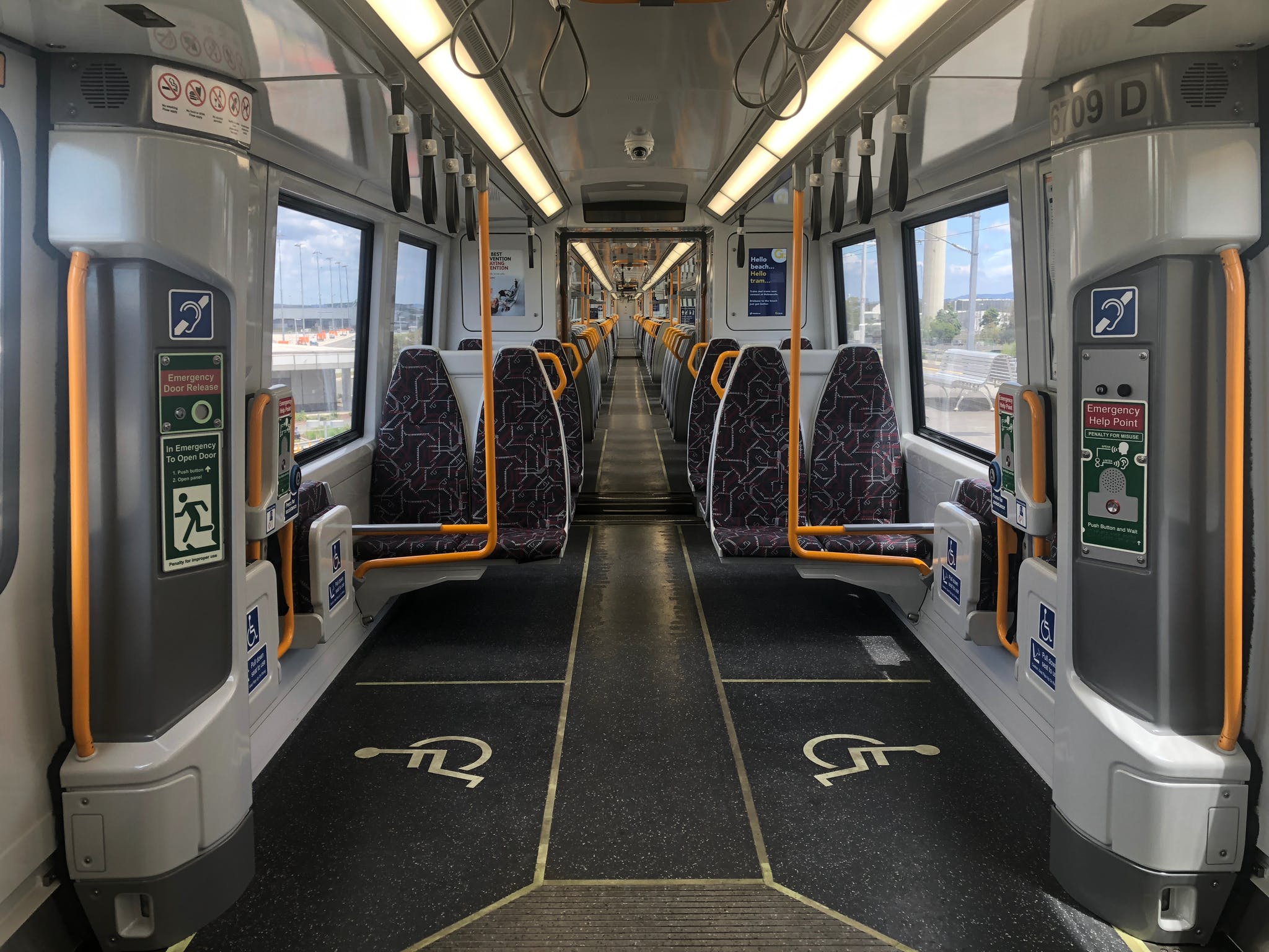 Airtrain travels from Brisbane Airport to Varsity Lakes, including Ormeau, Coomera, Helensvale, Nerang, Robina, and Varsity Lakes stations. Our trains leave at regular intervals, so you can catch an Airtrain every 15 minutes during peak times, and every 30 minutes during off-peak times. The journey is comfortable in our modern fleet of trains.