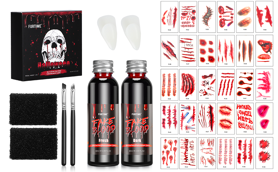 FURTIME Halloween Fake Blood Gel 2oz (60ml) Fake Blood Makeup Set Realistic Fake Blood Liquid