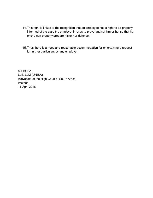 Requesting Further Particulars in Disciplinary Inquiry (11 Apri