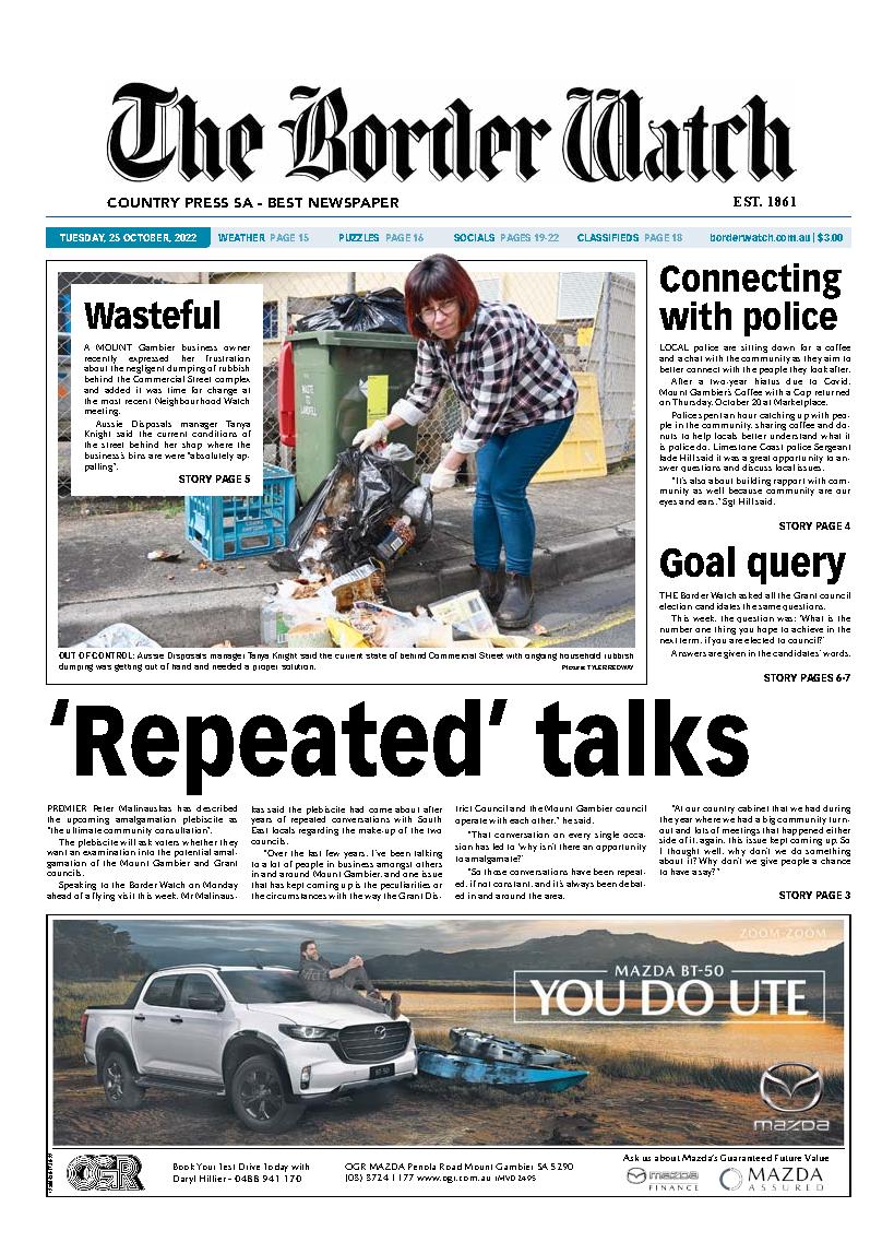 Border Watch Mount Gambier. 20K likes · 183 talking about this. Founded April 26, 1861 Country Press SA Newspaper of the Year 2010, 2011, 2012, 2013,.