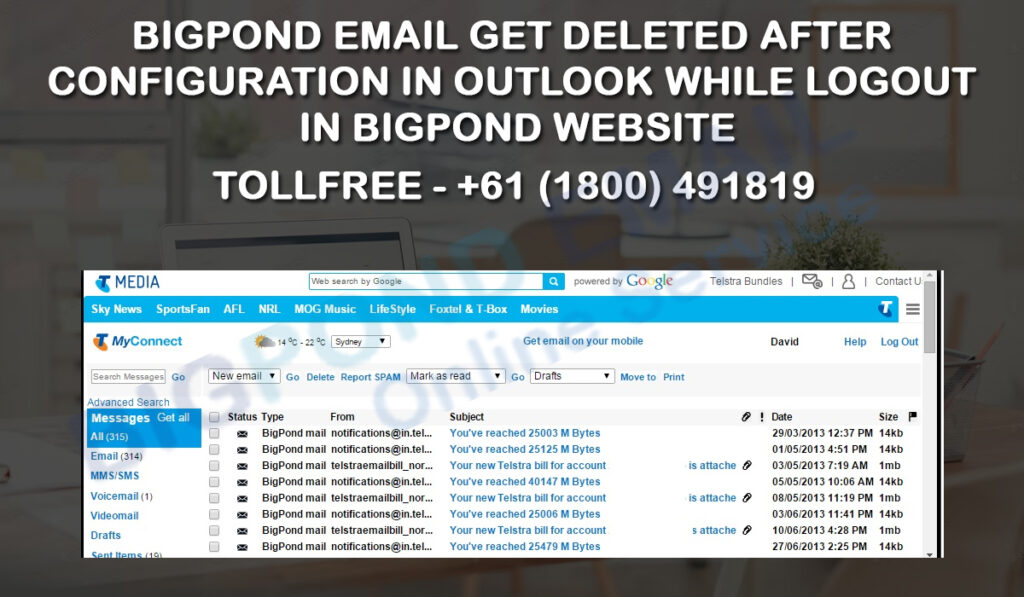 Bigpond email gets deleted after configuration in outlook while logging out in the Bigpond